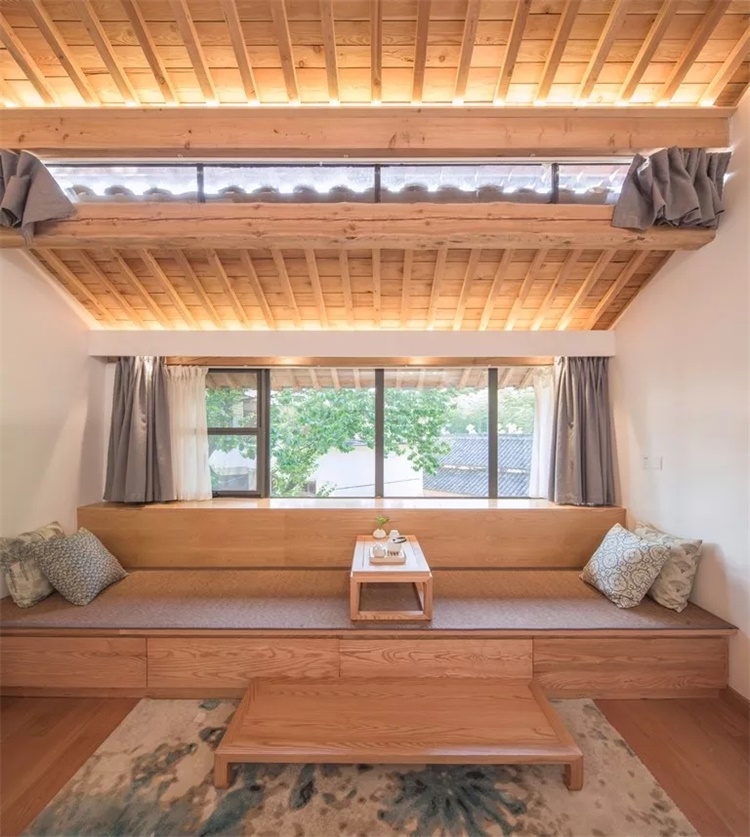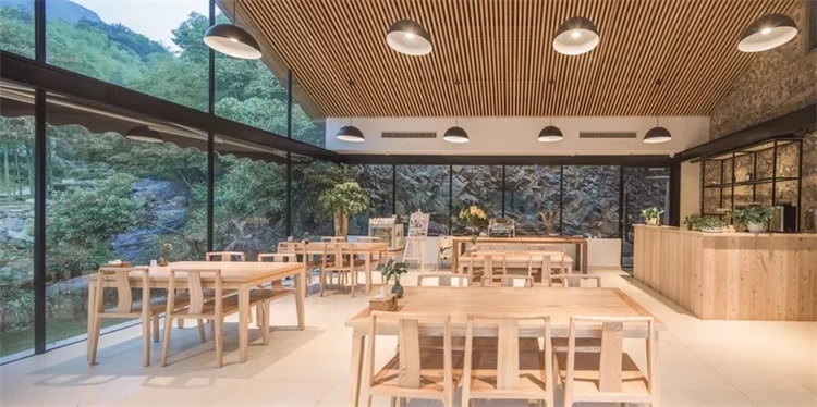 原木色的房间内饰,搭配着盛满绿意的玻璃窗,让一切看起来是那么神清气爽,仿佛瞬间回到了小时候的乡村生活——早晨在鸟鸣中醒来,夜晚伴着蝉声入睡的场景,依然历历在目。