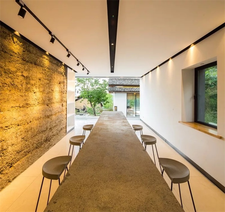一堵堵古朴而粗糙的土夯墙,被最大限度地保留了下来,同时为了满足现代都市人的生活需求,这些房子又采用现代建筑语言,结合地域化的生态环境,营造出了一个舒适自然的当代民宿建筑。