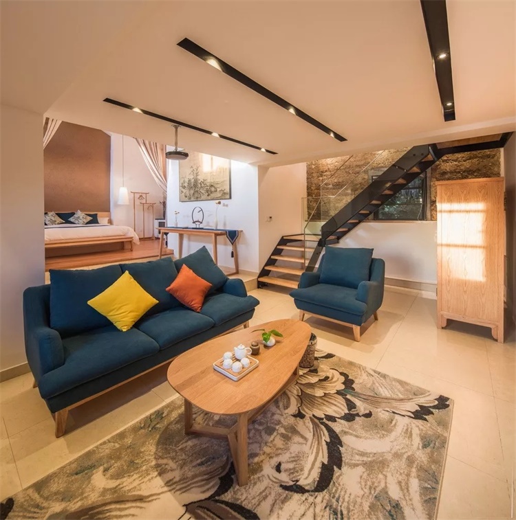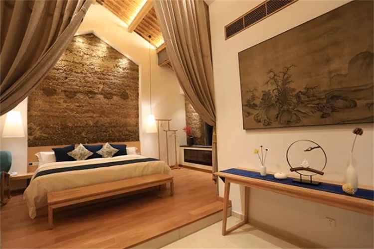 “云山墨戏”则适合家庭或亲子出行。因为里面的卧室与多功能的起居空间正好融为一体,足以让大人和孩子在同一空间里“各得其所”,又能让彼此之间互不干扰。