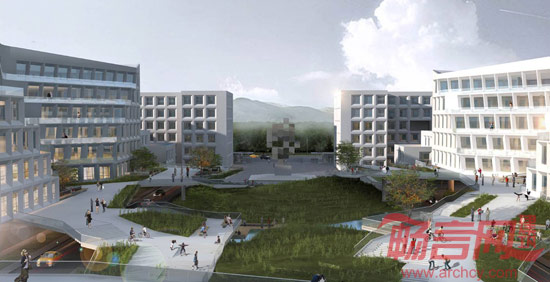 生活服务区相对独立安静,为在这里工作的人们提高安静、方便的条件。并且在宿舍之间的庭院内以及建筑的地下层有大量的运动健身场所,丰富员工的日常生活,旨在提高员工的身体素质。