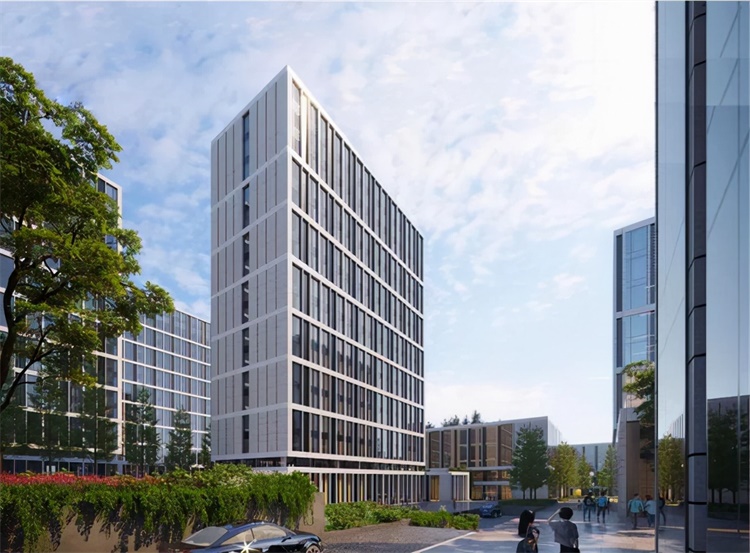 主建筑的轮廓鲜明灵动,围合成风格各不相同的公共广场、绿地和庭院,在园区内形成公园般的景致。