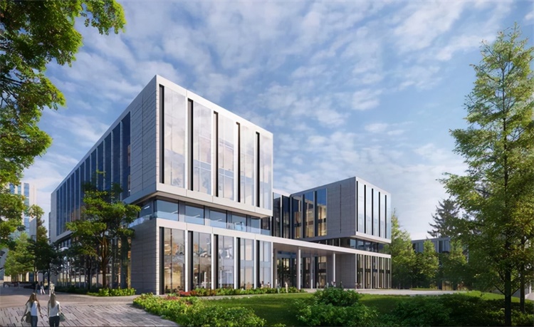 规划设计中将城市公园中的绿化引入基地内,致力于打造花园式的科研办公场所,形成“绿树掩映”的氛围。
