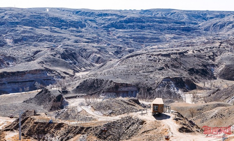 砒沙岩是一种集中在鄂尔多斯古大陆上极端贫瘠的特殊岩层,其沟壑纵横的外貌色彩斑斓,观赏如画。为研究利用这一独特的地质景观并为人们提供休憩与活动场所,客户决定在暖水乡砒沙岩地区建造一座占地89.7平方公里的地质公园。