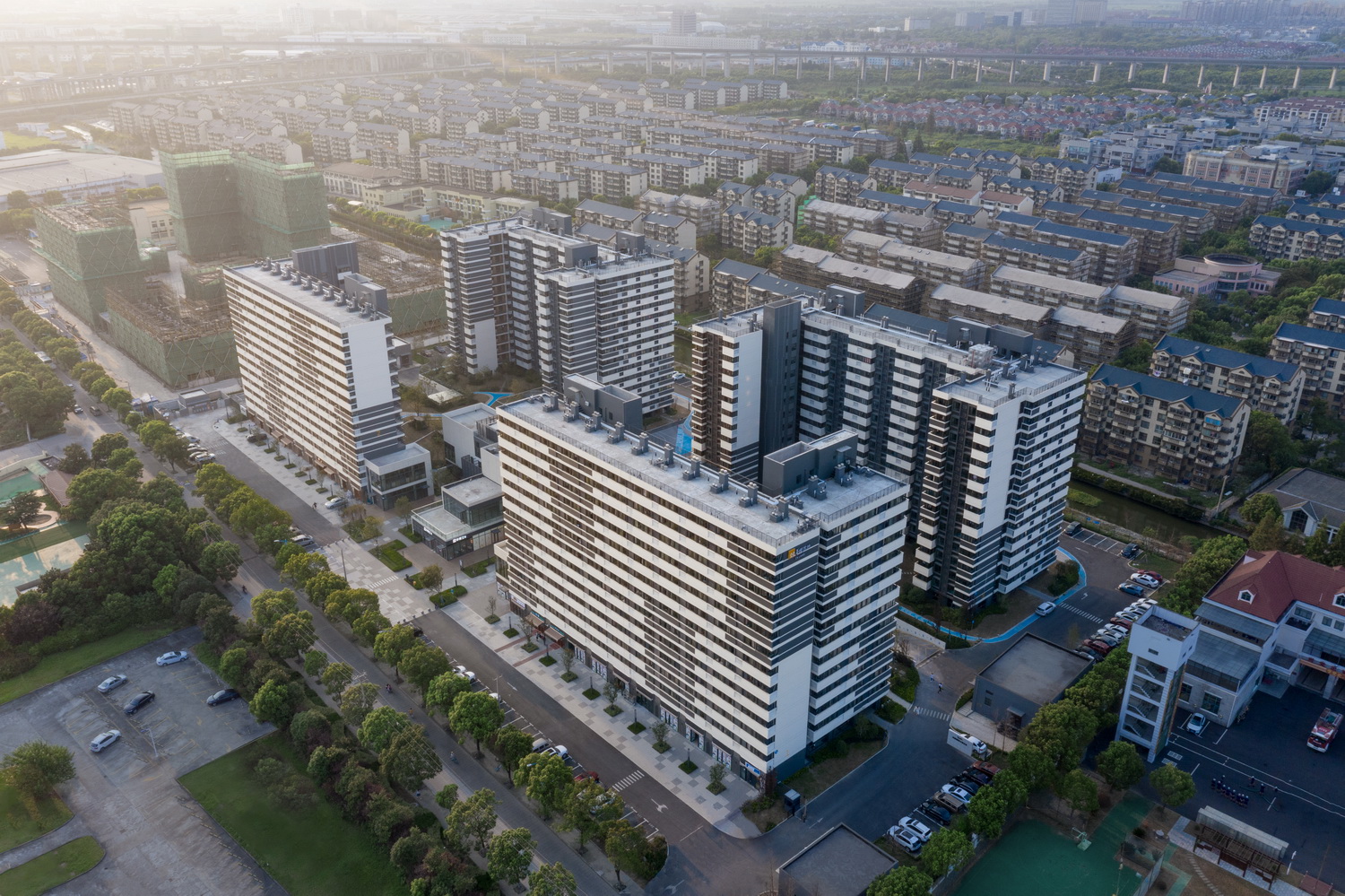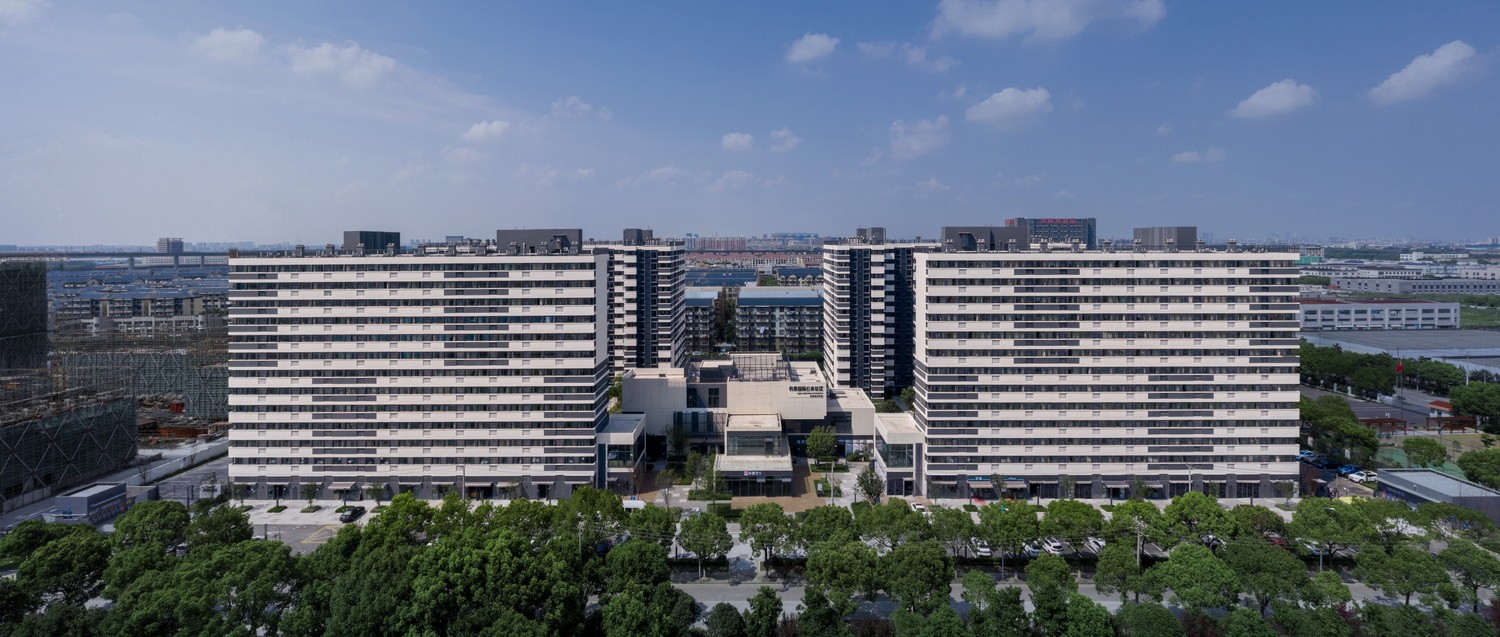 项目毗邻G60科创走廊产业带,位于国家级松江经济开发区东部园区内,该区域产业聚集度高、产业人口住宿需求大。标准化、规模化及高品质的新建租赁社区就是在此急迫需求的背景下产生。住区内分为5栋建筑,其中1-4号楼为租赁住宅,5号楼为配套社区商业。社区可为1300多户提供租赁住宿,自2021年4月投入运营以来,入住率达到9成。