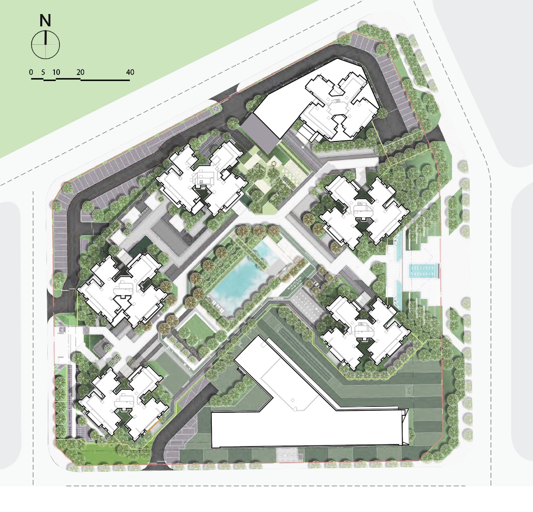 玺云著,是一个高容积率的新人居课题,“如何能让建筑不仅是孤立的个体,而是集合建筑、人与自然的绿色城市景观”,是我们在设计中贯穿始终的立足点。我们将所有塔楼在有限用地范围内最大化扩大楼间距,释放出南向开敞庭院以打造舒适怡人的中心大花园,这样,既能满足高得房率,又能将城市的绿意归还给市民,我们希望把我们的房子建造成人人都喜欢的景观,并且能让人们感受到城市的美好。