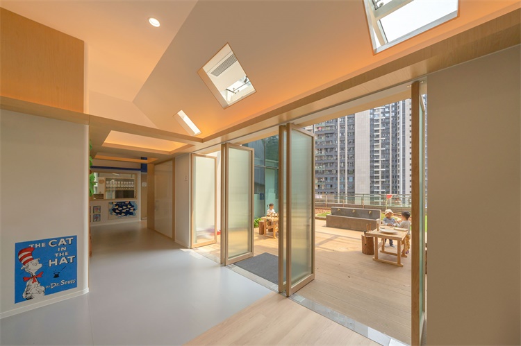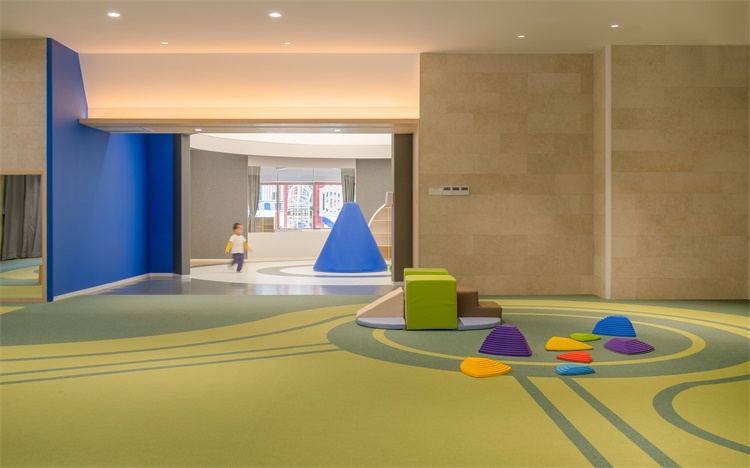 自由的活动区域对于孩子们来说永远是欢乐的天堂。在设计中的每一层都占据了较大的面积比例,在寸金寸土的城市背景下这是少有的幼儿教育空间布局方案。
