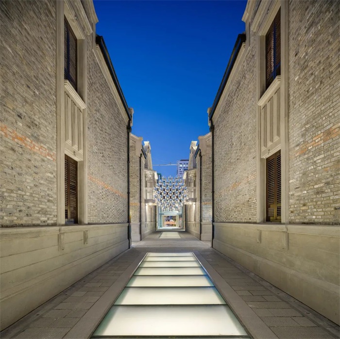 上海苏河湾万象天地位于上海苏州河畔,由Kokaistudios领衔设计,它的落成打破了这座城市过去、现在与未来的界限。该项目的出发点是反思如何使商业空间更好地融入周边环境,由此应运而生的“城市峡谷”提供了一个全新的城市公共空间,继而成为上海同类项目的典范。