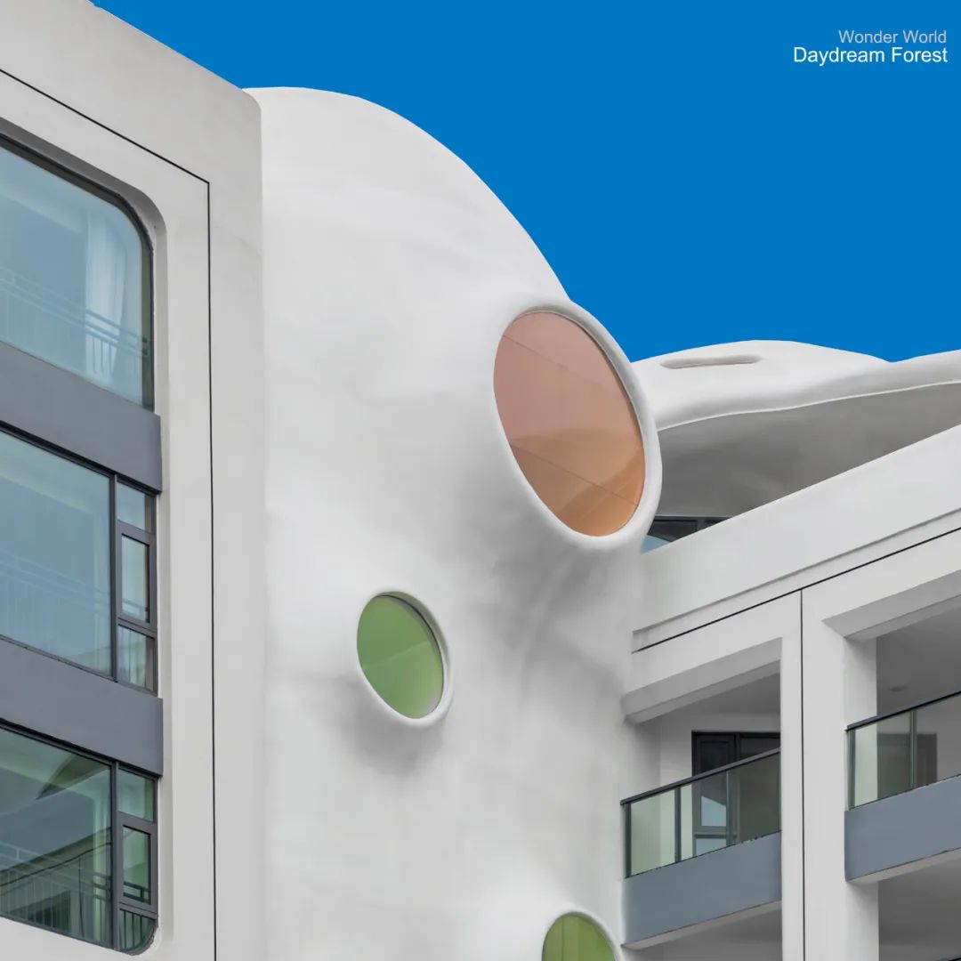 首先开业的奇趣童年酒店作为乐园综合体的重要一环,酒店整体采用灵活立面分隔体系,立面以“星际探索”为主题,富有层次感的体块营造出星际空间站的到达体验,环形的孔洞犹如星球表面起伏的洞口,以极具标志性的造型打造奇趣童年乐园的建筑名片,满足童年幻想,为家庭和儿童畅想在不同星球王国游历探险的经历。网红套房以月球环形山和基地为参照,屹立于酒店顶端,俯瞰整个游乐园。同时,设计围绕酒店内外,打造了丰富的活动空间,供亲子游憩。
