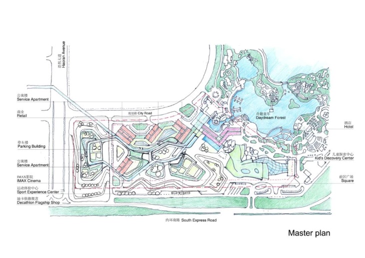 襄阳华侨城奇趣童年综合体涵盖主题商业,酒店和公寓于一体,面向城市打造富有主题趣味性的一站式家庭体验娱乐综合聚落。通过富有活力的游览动线规划,紧密串联起华侨城奇趣童年乐园,星环主题商业 ,奇趣童年酒店,和服务式公寓。在此,通过虚拟世界和现实娱乐的融合,微观尺度和宏观尺度的戏剧性碰撞,规划和设计将为家庭及孩童们提供富有幻想和冒险体验的沉浸式空间和路线。并打造富有新鲜感的商业购物,家庭活动,及旅居生活空间体验。