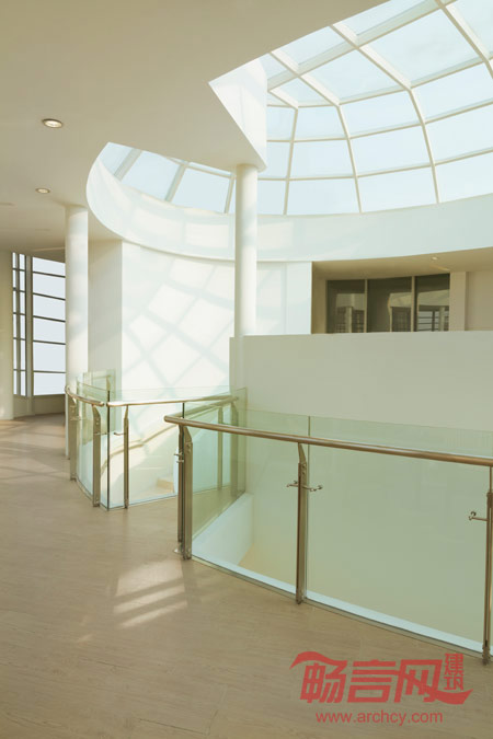 二层入口处配有动画演示区域,观看演示动画之后,参观者便被带进模型室,模型室内光源有限,目的在于突出展示未来商场模型。参观二层之后,站在第二层的户外露台便可以瞭望远处正在施工建设中的商场,这也是连接“现在”与“未来”的节点。