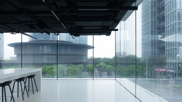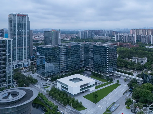 美的科学中心的选址极具深意,它坐落于美的新总部的核心位置,周边环绕着现代化的办公建筑,同时它与安藤忠雄设计的“和美术馆”仅一路之遥,因此如何处理和这位建筑大师作品的关系,也成为本建筑绕不过去的话题。