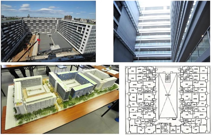 围合式街坊是构成欧洲大部分城市的典型单元,我国的四合院、石库门也是围合式住宅的代表,在日本、香港等城市的公共住宅领域亦广泛采用。其节能省地、适合邻里交流的特点对于建设条件苛刻的中心城区公租房项目而言是一种理想的模式。