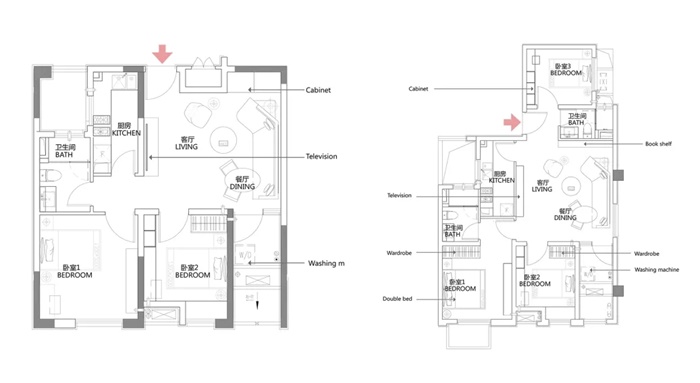除一室户卫生间向公共走道间接采光外,二、三室户均为全明设计。动静分区明确,流线紧凑,二、三房基本做到二卧室朝南,在有限的面积内完全达到商品房标准。室外空调机位也作了充分的考虑。