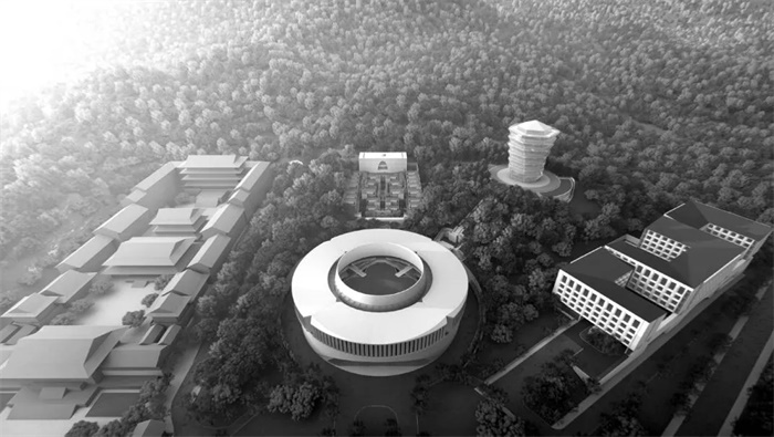 圆明堂是集展览空间、多功能会议中心、商店、茶座于一体的文化中心。建筑将现代和传统合理结合,建筑中庭的四叶莲花体现佛教教义理念,而建筑内部具有多样化的会议空间,满足不同活动的需求。