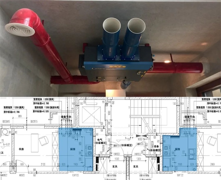 ● 新风机:合理规划风机管线,控制风机吊顶净高;室内风管尽量避免穿梁,无法避免则需结构进行必要考虑;