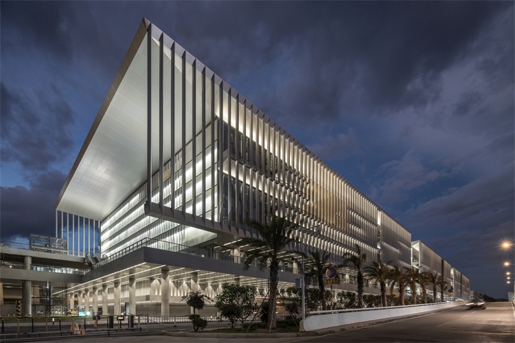 三亚凤凰国际机场停车楼综合体地处高铁站与机场候机楼之间,基地东西绵长,南北狭促,四周为机场进出道路所限制。重建城市与机场的联系,疏解和补充航站楼的配套设施,整合高铁、航站楼的交通关系,是此项目的首要设计目标。