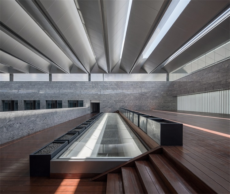 中庭屋盖被设计成太阳光的引导装置, 通过对自然光线引导方式的精确设计,我们建立起空间与自然之间的微妙联系。我们通过这种特殊的方式,希望能够重新唤起自然在日常生活中的情感共鸣,以此赋予生活以一种庄严的仪式感。