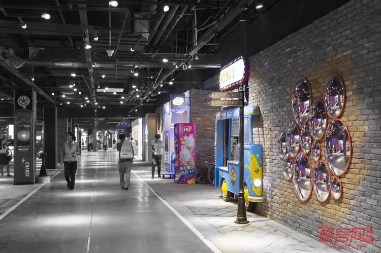 时光引擎商街位于长春新城吾悦广场地上一层,两侧各通过一个体验式下沉广场与外部相连,将客流自然导入室内原创主题街区。