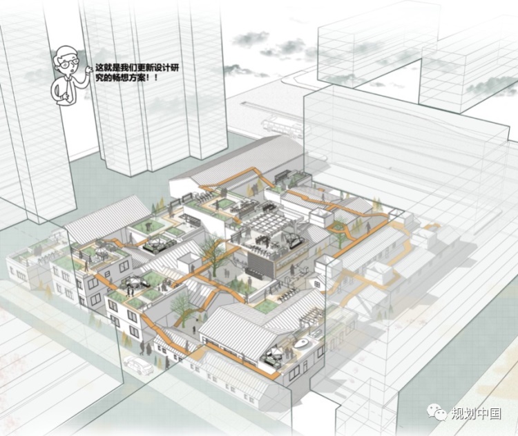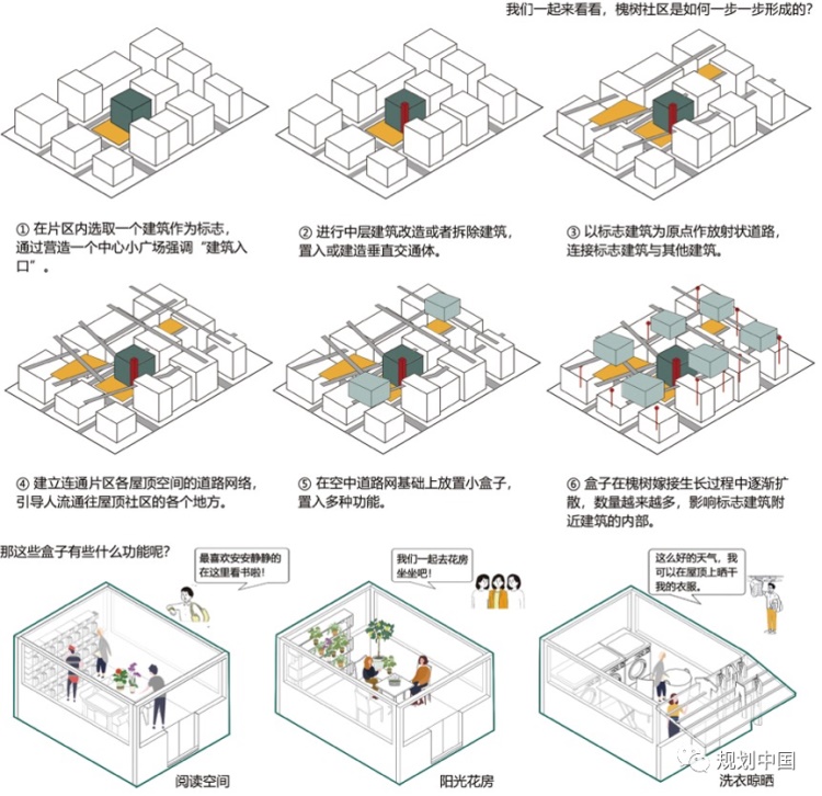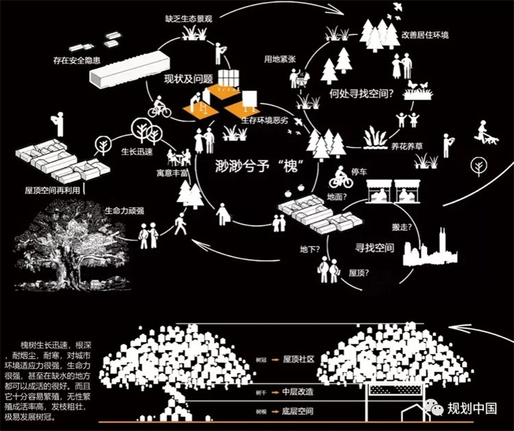 提出了“基于屋顶空间再生产的槐树社区”更新设计的概念