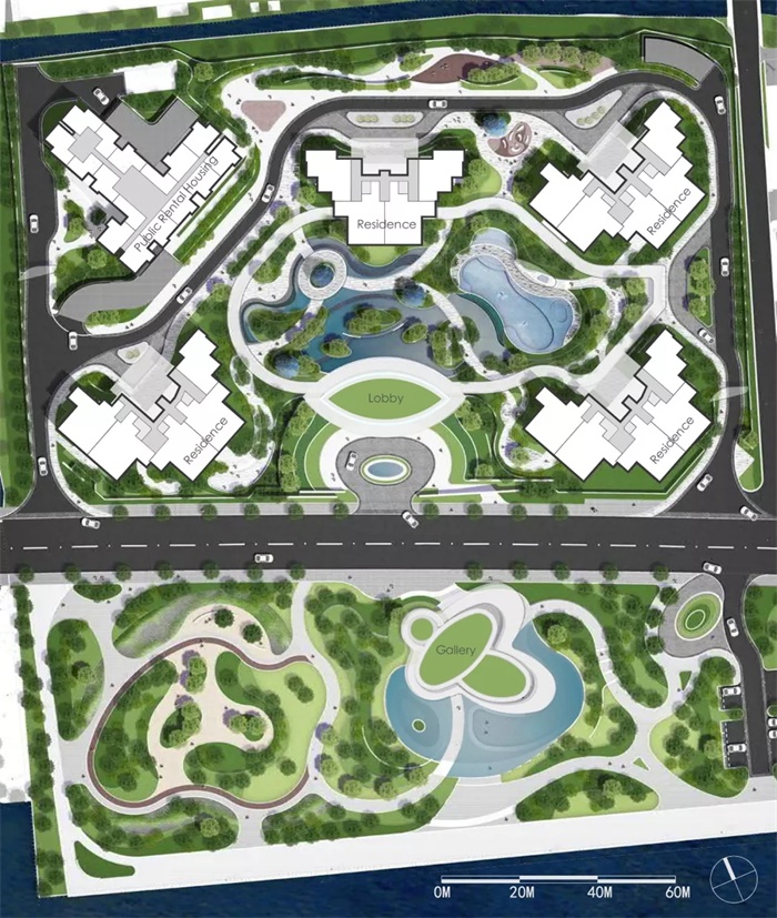 住区地面的公共空间在高密度的城市中尤为珍贵。我们与AECOM及燕语堂团队合作,将住宅首层架空,最大程度解放地面空间,连同小区园林、单体公建,一直延伸到住区南侧的滨江公园,共同营造有滨水风情、有艺术格调、亲近自然的空间氛围,打造复合多元的社区,为居民生提供多种可能性。从集中大堂、室外园林、到各个架空层,有风雨连廊将各个公共空间串连起来。让住户风雨无阻,增加归属感。