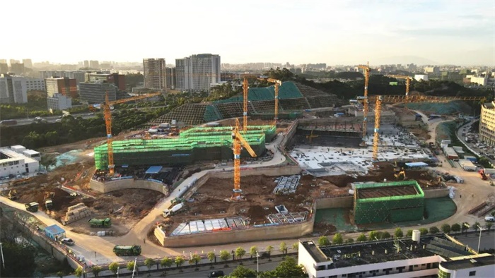 一期项目建筑面积约13.05万平方米,总投资约10.9亿元,主要包括教学、行政办公、生活服务、产学研、体育馆等建筑。今年以来,参建单位克服疫情影响大、雨季时间长等不利因素,见缝插针,加班加点,全力推动一期项目建设,目前已完成主体工程总量的30%,其中首栋建筑生活服务用房已顺利封顶。