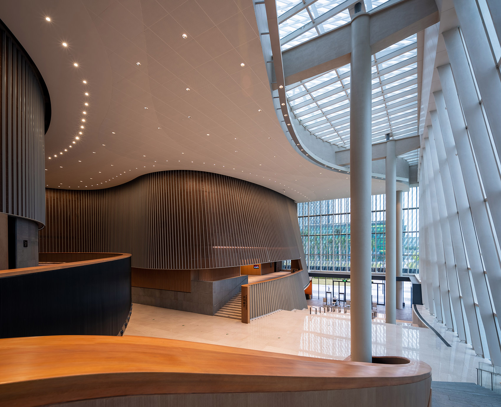 ▼外立面的波浪形设计进一步延伸到大堂空间 © 张超建筑摄影工作室 © 张超建筑摄影工作室