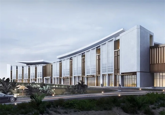 项目选址在东屿岛东北鳌头位置,契合“独占鳌头”的暗喻。新建会议会展最大限度利用岛内现状道路和地势形态,延续一期的南北向延长线,反弧形的设计与一期形成整体态势,且与一期及现有酒店联系便捷,有利于总体布局与功能联动。