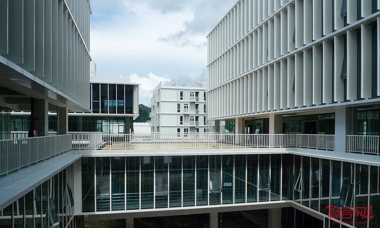 一层原本相互分离的建筑体块在二层通过外廊道和内部走廊连接起来,并根据动静分区形成了开敞和封闭两种内院。这些在视线上相互渗透的内院和第三层的景观平台一起形成了多层次立体的景观系统。