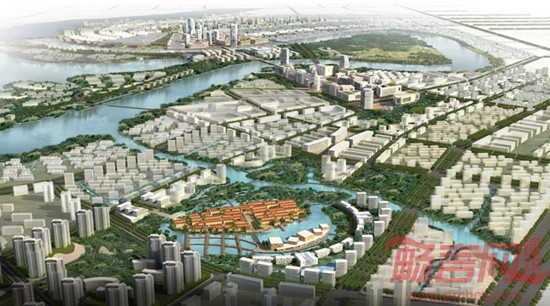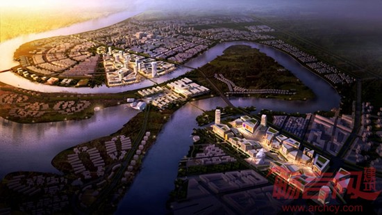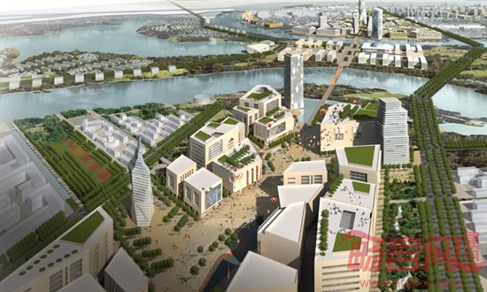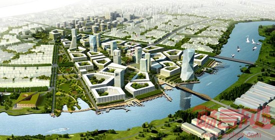 双交会的生态谷和运河以其独特的特性形成了一个天然的内在核心。两个河道之间形成的地峡留作研究,会议和展览的用途。北部和南部地区拥有截然不同的两种风格。这个中心区内部的城市结构在规模和形态上与周边城市肌理是全然不同的。这个核心区被认为是建筑业的领航和绿化带,成为周边城市的标志性区域。