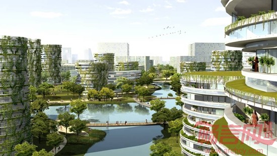 一条长 12 公里的绿色长廊(作者称之为“生态谷”)将被作为连接各个功能区在新城中心区的关键设计元素。根据生态设计方案, 一条地铁线路将会形成线性城市的主干。