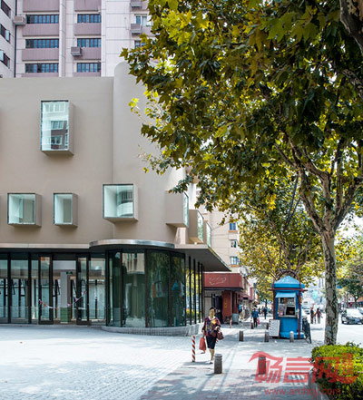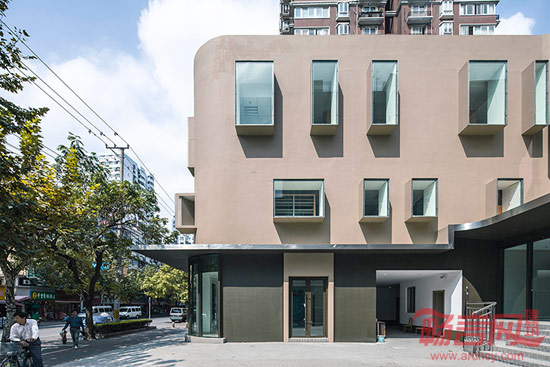 在原有建筑层高变化多、立面尺度语言无序的情况下,设计以外墙涂料和钢板、玻璃作为主要材料,由凸窗和凸窗套两种立面语言统一了建筑沿街面和非沿街面的形式。