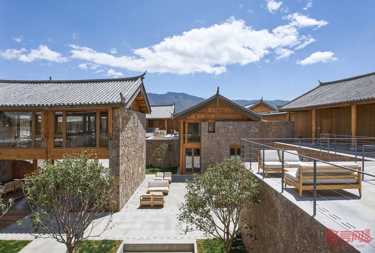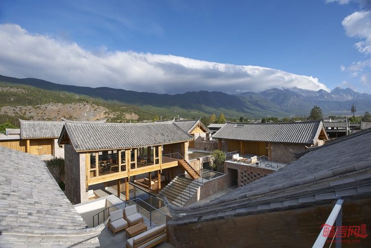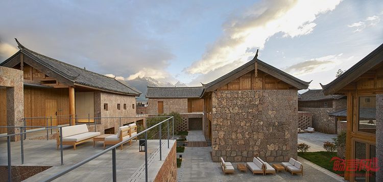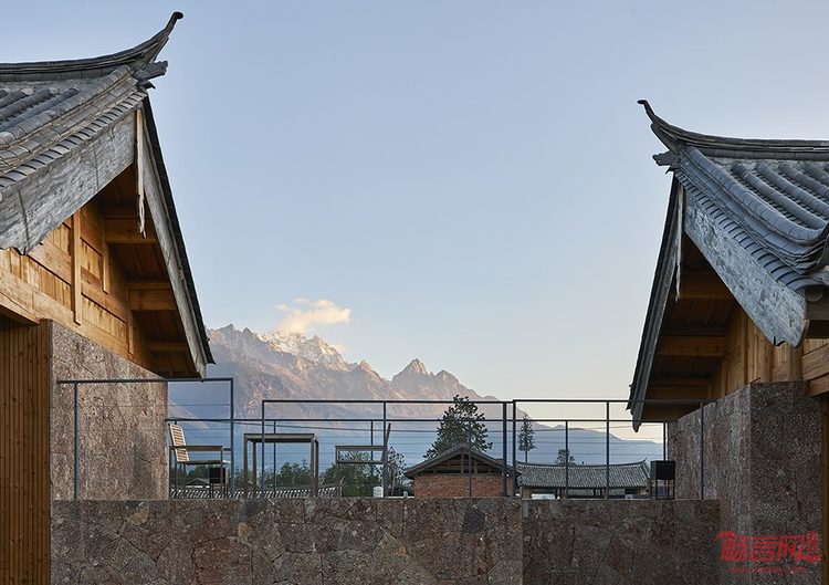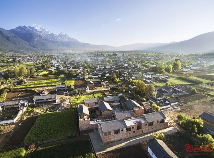 当下,有越来越多的休闲度假酒店是针对居住在城市的人们,在地方城市改建老民宅而建成的。这次的项目地块位于云南省白沙村,那一带农村到处可见并排而建的纳西族传统民宅,有浓郁的田园牧歌般的氛围。木造民宅外墙上堆砌的是产自当地的五花石,可近距离观赏雄伟的玉龙雪山。客户要求我们再利用四栋已有的纳西族民宅以及正门做设计,在延伸至周边的不规则地块上增建新建筑。