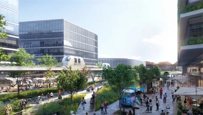 公共交通是本方案的核心,辅以其他交通策略,旨在减少枢纽区域内小汽车的交通量,并优先考虑安全出行。在整个总体规划中,行人享有优先权,而城市设计创造了大量人尺度的空间场所,为市民提供富有活力的城市体验。
