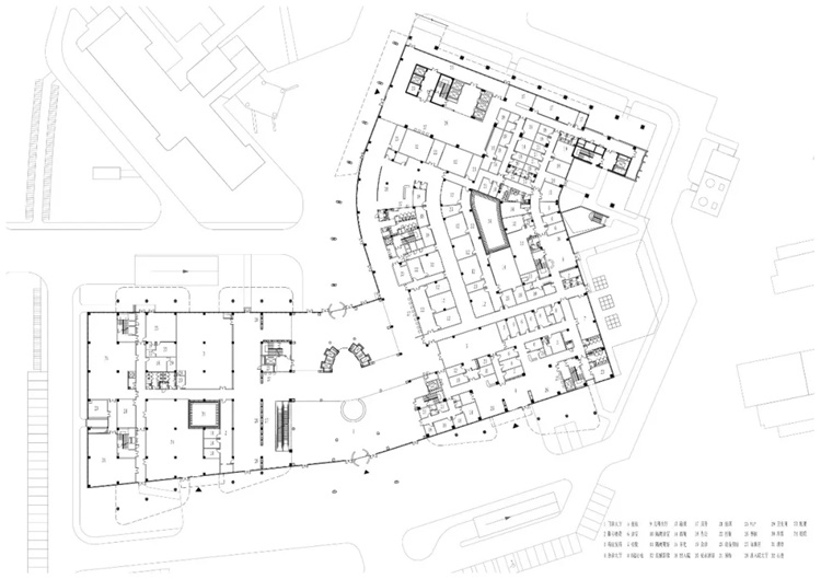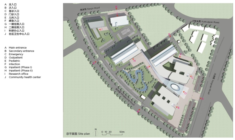 该项目需要在既有院区的分步更新中,实现流程的延续性与完整性;在狭小而不规则的场地上,解决复杂的功能需求及交通问题。也就是说,如何因地制宜地进行院区的规划布局,这显得十分重要。