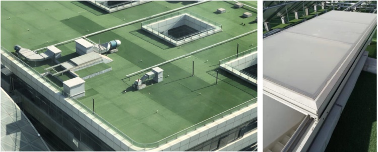 3. 采用屋面电动滑盖式楼梯间,解决出屋面楼梯间与建筑形象之间的矛盾,电动滑盖与消防联动,同时解决楼梯间疏散和排烟的问题。