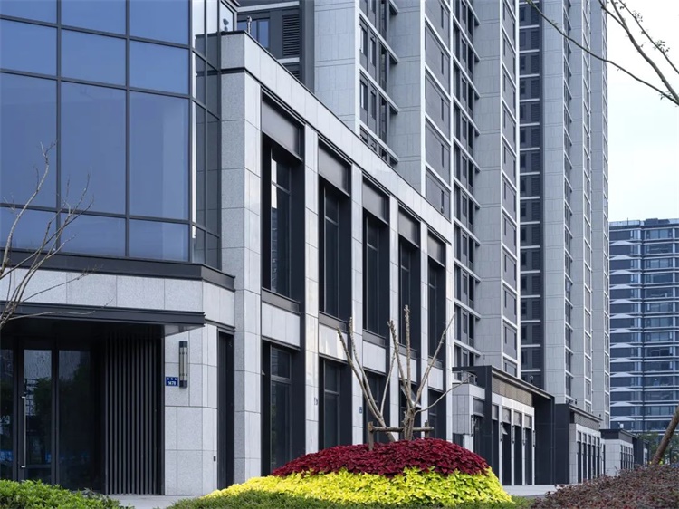 选材是真正意义上从二维图纸的想象进入三维实体的第一步,材料的质感和颜色直接影响到建筑落成的效果。钱江世纪城飞虹华庭、仁孝华庭住宅立面每一种材料的确定都经过了几轮、十几种材料的反复比对。