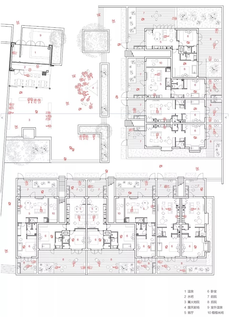 度假是对新生活方式的尝试,要创造一种怎样的新生活方式是建筑师在设计中思考的源头。“社交”是人际关系及身份建构的过程,但在当代语境下,网络“朋友圈”成为了社交的缩写,甚至家庭成员、朋友之间社交也建构于虚拟之上,现实中的社交日渐式微,成为了奢侈的“新生活方式”。能否重建人与人面对面的社交体验成为建筑师对这一项目提出的命题。“大院”这一带有年代感的名词,它本身就带有极强的社交特质。这是建筑师对本次设计的切入点。