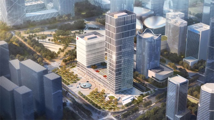 项目位于广西南宁,规模较小但仍贯彻着贝氏独特的设计风格。两座高度不同的塔楼,由低矮裙楼统一起来。其中较小塔楼的外表,覆盖着晶莹的双层幕墙,当夜幕降临时,它将会变身为城市中一座发亮的水晶立方体。本项目的中方联合设计单位为中国建筑设计研究院有限公司。