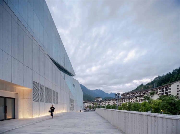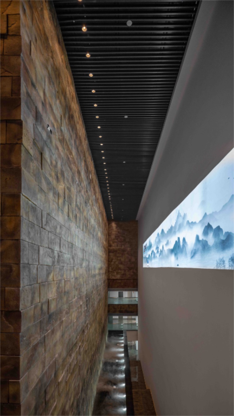 巴山大峡谷“梦回巴国”剧场的外立面完全融入当地环境,既不突兀,又不失质感。景观设计以人为本,结合景区周边风格,将绿化率做到最大化,同时满足消防、参观流线合理的需求。可行之径——清晰的栈道路径,让观众在不知不觉中浸入其间;可望之形——巨石与大尺度山水相融,象征巴国人坚毅的性格;可游之墙——巨石四面斧凿栈道,外墙可随意游走,直至屋面,在峰回路转中,钟情山水;可居之器——博物馆和“梦回巴国”场剧,相隔于“深渊”。这是一次体现出地域性和当代性的创作实践。