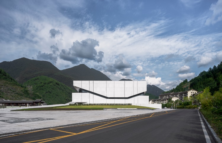 巴山大峡谷“梦回巴国”剧场是宣汉县打造国家级文旅扶贫景区——巴山大峡谷的重要项目,对助力巴山大峡谷九万多建卡贫困户脱贫致富起到了极其重要的作用。建筑与《梦回巴国》大剧同时亮相,受到省、市各级领导、全国文化和旅游系统、全国文联系统的高度评价,成为当地居民重要的文化活动场所。该剧场与山水环境相依,与剧目的诞生相伴,与巴国文化相映。从远处看到它的那一瞬间,大戏就已经拉开了序幕;生长于湍流深谷的巨石,忘剧院之形,得巴山之意;远观素雅、近抚刚毅的表皮上,斧凿出栈道之艰险。该剧场是观者与巴山前水在攀登中的浸入,这是一座外表可攀爬、游览的建筑,也是一座传承巴国先祖密码的建筑——神秘的象形文字“岩”在巨石栈道间若隐若现,更是一座坚守地域文化精髓和当代设计语言的建筑,以至简的语言诠释着巴国文化的大“道”。