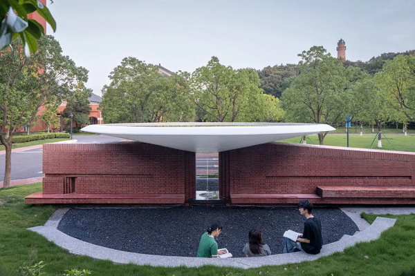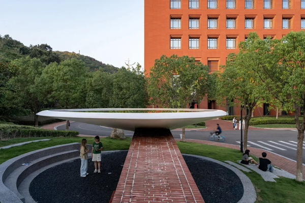 在浙江大学舟山校区办学将满十周年、海洋学科迎来第十五个春秋之际,作为舟山校区的设计团队,我们受邀为校园设计一件纪念物。最初的任务明确而典型:一座雕塑。但我们思考,在这样一片与海为邻、清远宁静的校园里,纪念是否有更生动的形式?相比树立一个孤立的视觉焦点,不如创造一个能容纳体验、激发互动的场所。这一想法得到了学院的信任与支持。于是命题从“一座雕塑”被解放为“一处场所”——“亭”的概念自然浮现。它意味着庇护、停留与聚集,既能容纳象征性的精神核心,也能围绕它展开日常的休憩、交流与沉思。