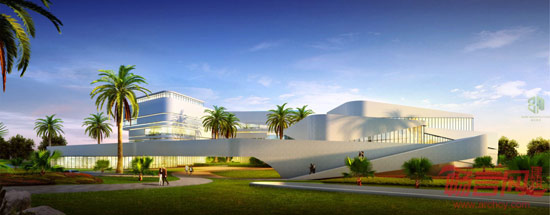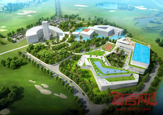 建筑的体量经过精心设计,创造了一个和谐且流畅的总平面规划,同时也提供了好的朝向和非常好的视野。建筑流线型的形式,适应了其周围环境,并使开阔的视线更加流畅。新会所遵循对西方以前的传统会所的理解与延续来进行设计,并给与其现代的建筑形式。建筑物的内部组织基于一个开放的内中庭空间,在其周围形成人流环线。两栋L形建筑围合的开放式的内中庭连接了公共空间,也同时把高尔夫球俱乐部和康体中心联接成为一个整体。