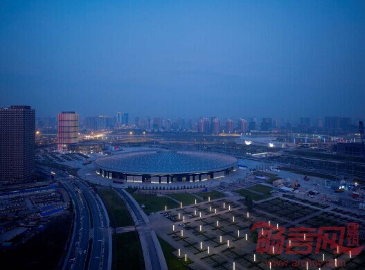 展览中心采用目前国内单体面积最大的大跨度螺旋穹顶管桁架屋盖,主体结构跨度 87m,外环柱轴网直径229m,内环柱轴网直径45m。两圈环形柱廊支撑起顶部巨大的圆形屋盖,内部形成超尺度的无柱空间,满足展览功能的需要。屋顶结构管桁架相贯连接,呈双向弧形放射状排布。