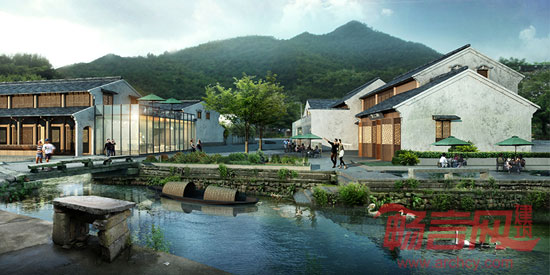 同时,将古街的建筑布局和水系关系顺应已有的村落肌理与水道。另外,整个韩岭古村的街道约600米长,我们商业动线的开放空间也严格遵守现代人购物体验的行为方式,希望在人的购物路径上创造出移步换景的效果。