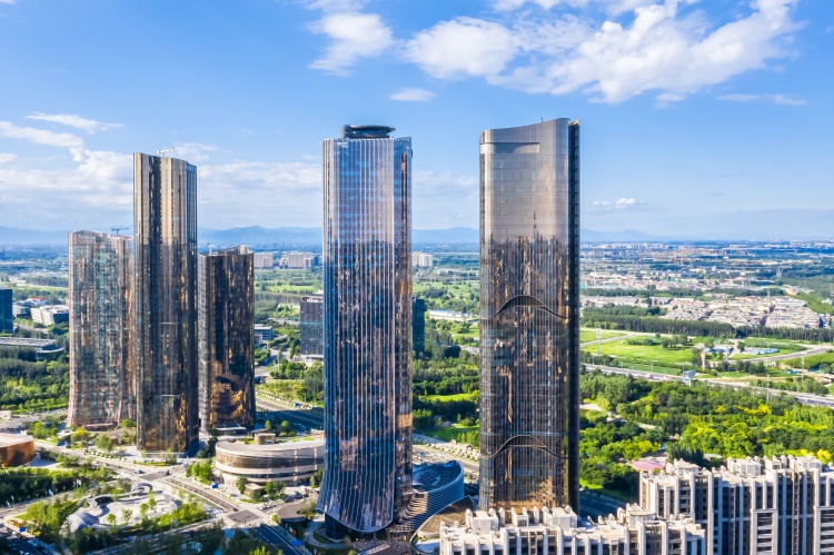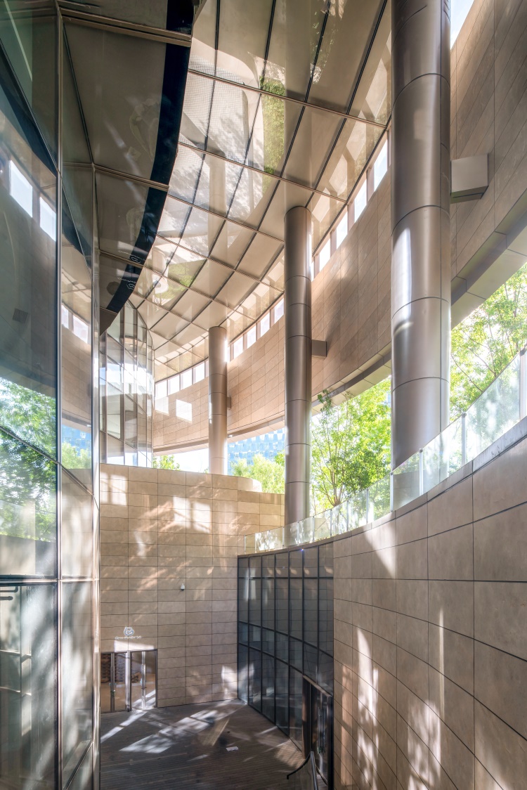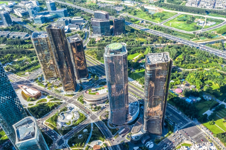 这样的景致似乎和大家印象里的大望京建筑群截然不同。作为未来世界级商务核心、北京第二CBD大望京的门户工程,它留给人们的印象,更多的是从五环望去闪耀耸立的都市绿洲,又或是驶出机场前往市区时瞥见的生生不息景象。宏伟大气又舒适宜人,两种迥然不同的描述在这个建筑群中自然融合,而这都要归功于设计师Andrew Bromberg,他以“与自然共处”理念设计而成的都市绿洲,为使用者与旁观者提供了两个截然不同的观感体验。