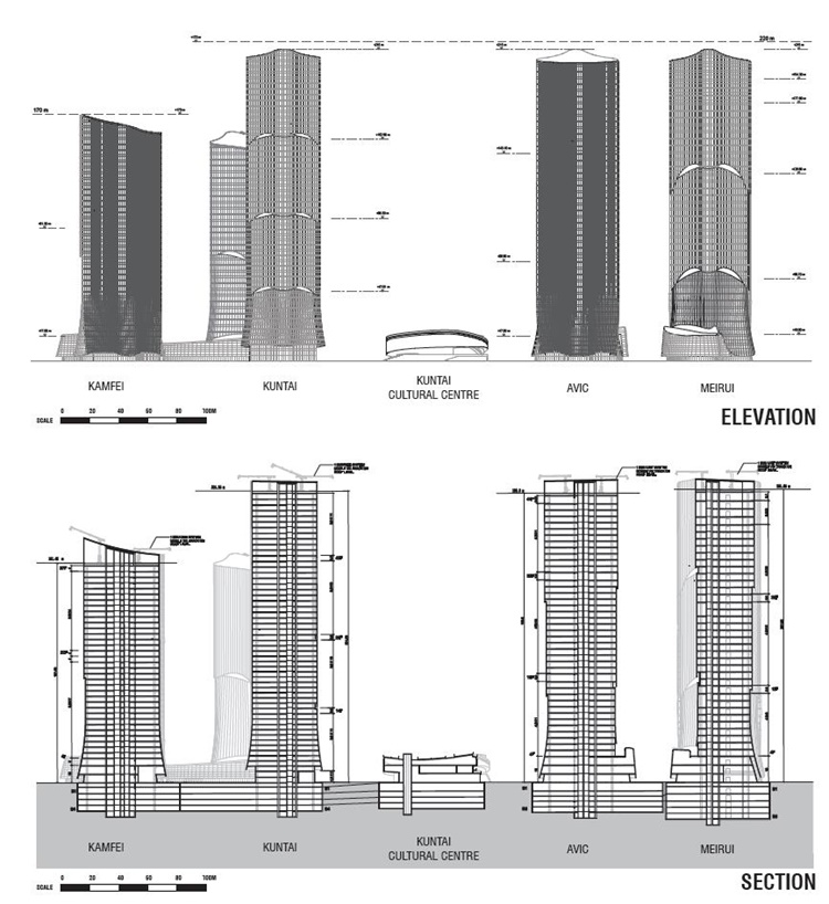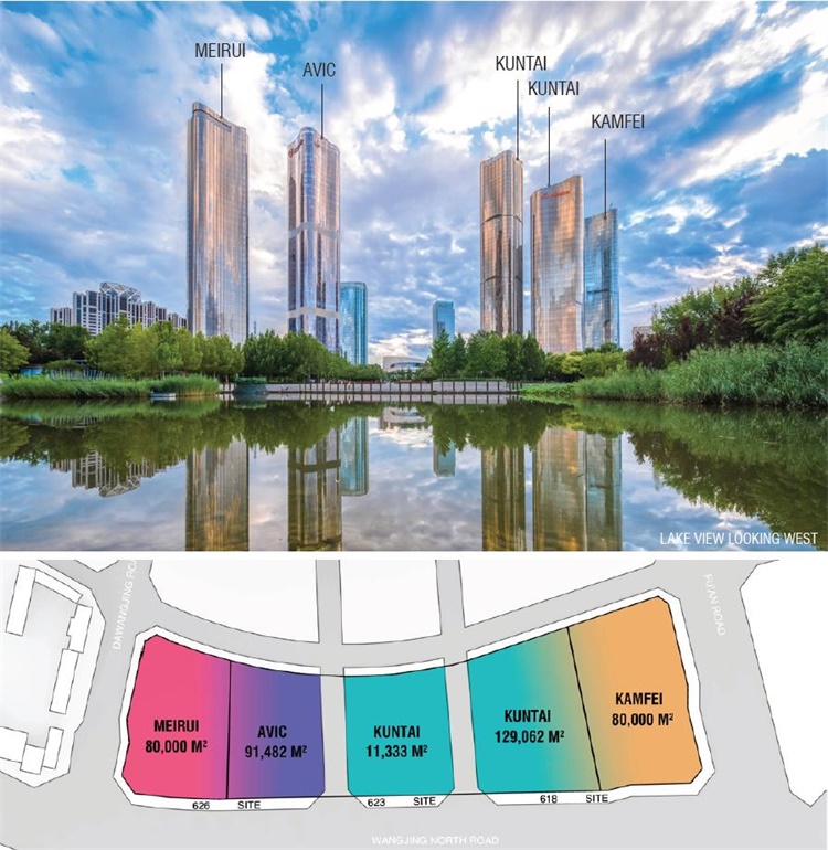 大望京综合开发项目的成功不止于此,能够在设计阶段就获得包括欧洲领先建筑师论坛大奖(建筑设计综合建筑荣誉奖)、亚太房地产奖(中国最佳高层建筑5星奖)、A’设计(建筑、楼宇及结构设计金奖)奖等在内的多个国际奖项,建筑轮廓的设计也是一大亮点。“我希望它们都能够沐浴在光线中,像竹一样,向着它应有的方向生长发展。”设计师Andrew Bromberg通过巧妙地布局,让建筑群从五环沿线、机场轻轨又或是其他方向的交通干道,都可以获得富有层次的立面展示视觉效果。