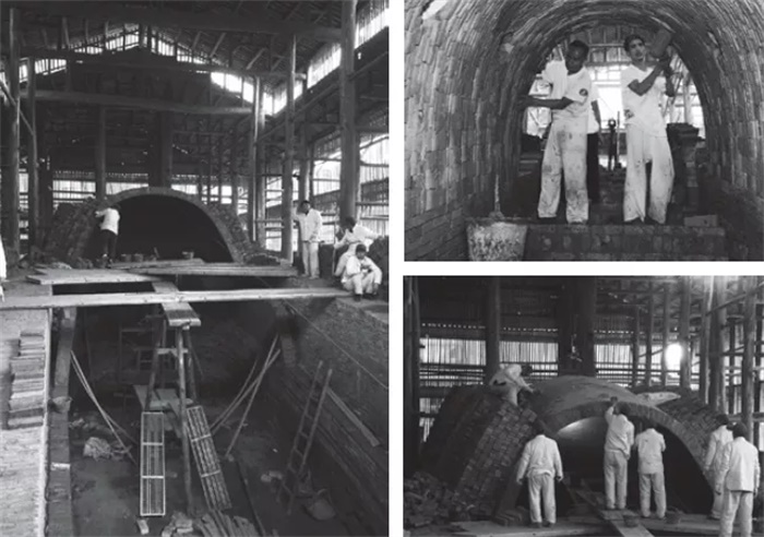 至于御窑博物馆的结构形式,人们大多认为其是建立于在城市中寻找建筑原型的方式上——朱锫延续并重构了原型,以适应一座当地现代建筑的目的和意图。刘克成在御窑博物馆品谈会上曾说,朱锫放弃了多数人会先被吸引的外壳和木架,而选择了被隐藏的窑拱作为原型是非常明智的做法。在考察这样一种与原型相关视野的时候,历史的意义显而易见。砌窑一业,从元代开始经景德镇当地人传世经营。重要的历史文献中关于砖窑的最早记载,见于乾隆八年(公元1743年)督陶官唐英的《陶冶图说》,“窑制,长圆形如覆瓮,高宽皆丈许,深长倍之,上罩以大瓦屋名窑棚。其烟突围圆,高丈二余,在后窑棚之外。”而传教士殷弘绪在给奥日神父的信件中也有讲述:“我所见过的这种窑约有一人高,约有法国最大的酒樽宽,是由大约一指厚、一尺高、一尺半长的砖砌成的……窑体底部离地面约有半尺高,建在两三层厚而不宽的砖上。窑的周壁用砖砌得很好……在周壁与窑体之间留有大约半尺宽的空隙。”