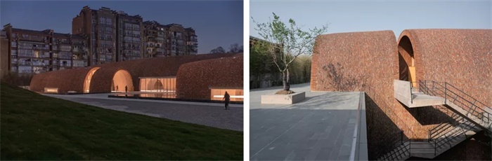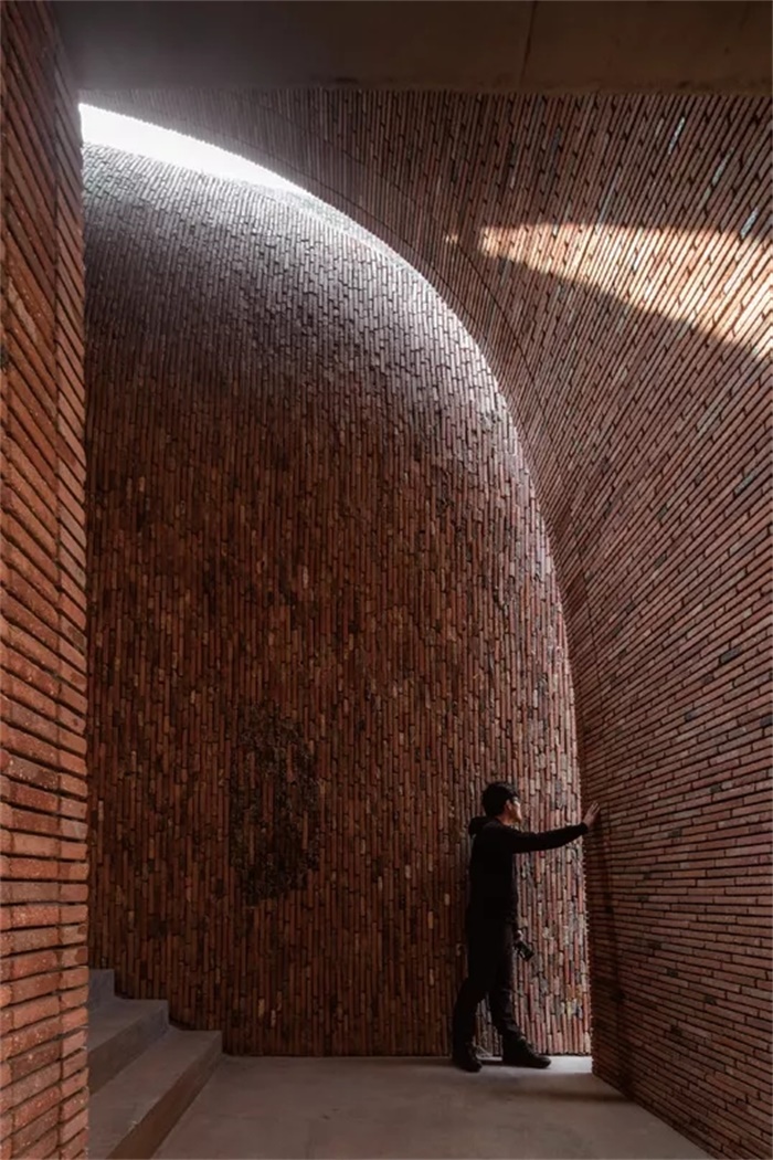从砖的表现效果来看,建筑师借用窑砖时间的痕迹和叙事的效果创造出生动自然的立面肌理。就像人们将诗歌当中所使用词语的方式作为一种将语言的表面“进行丰富”的过程去描述一样,一幢建构清晰的建筑也会把人们的注意力吸引到自身的材料性上。御窑博物馆窑体的表层砌筑用到很多老的窑砖,从过往翻新或维护、建造或拆卸项目中遗留下来的材料秉承着“将来可能会被用到”的原则被收集和保存起来。这些材料的专门性有限,但它们代表着一套真实及潜在的关系。建筑师对废物的获取和处置表明了我们如何利用事物并从中获取时间。而朱锫将新旧砖块结合在一起,目的即是展现新旧物体在人类学意义上的一种拼装效果。