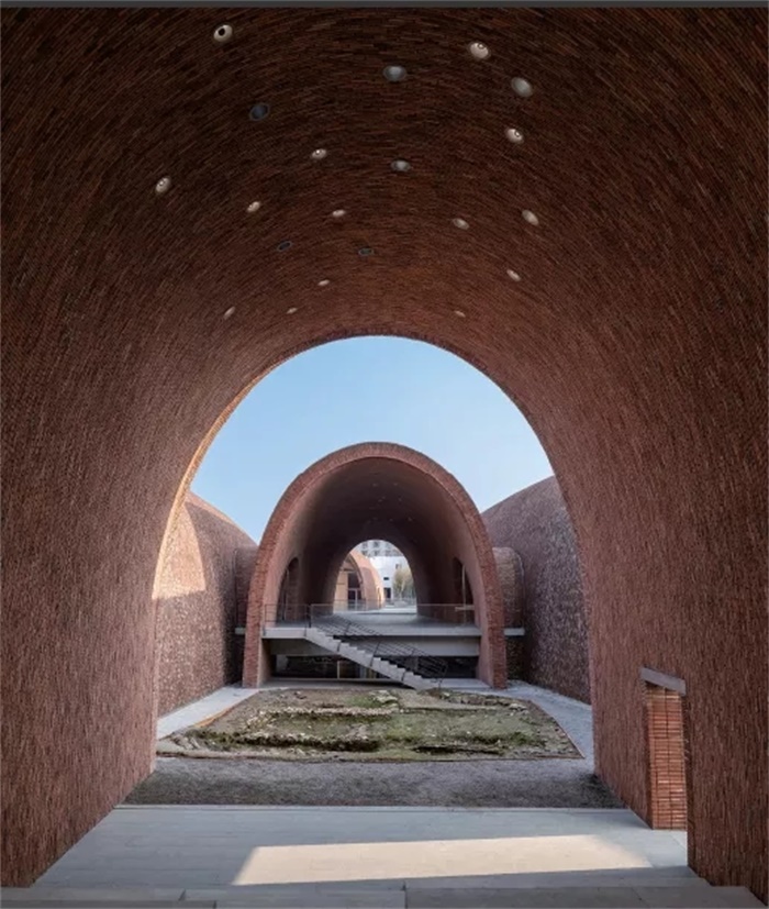 在挖掘御窑博物馆创作的根源性上,朱锫曾说:“与窑有关的描述深深植入到每一位当地人的血液之中,窑不仅仅是一个生产场所,还成了重要的生活和交往空间,塑造了当地人的生活方式,‘拱’这种原始的建筑形态也就自然形成了。”朱锫意在从日常生活的语言积淀与艺术瞬间美感中寻找新的精神家园,用来拯救那个应该具有的“真实”世界。这既不是形而上学解构方法,也不是理性的重建方案,而是一种“回溯式前进”的方法,也就是通过预以回到本真的源头与起点的批判道路而超越了现代性结构和类型的地平。从这个意义上说,朱锫提及的自然建筑已然不是对罗西结构性类型学的延异和建构,而是结合了文学语言,从而成为对它的跳脱和重构。