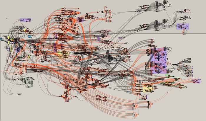 为了最大化楼板平面的效率,结构体系也进行相应的旋转,以匹配建筑的几何造型。柱网结构与幕墙单元在每个楼层进行匹配,以创建高效且灵活的室内办公空间。每层细微的收分和旋转变化,丰富了室内空间的参数。参数化设计的应用,确保了复杂的玻璃幕墙板块的精确设计。